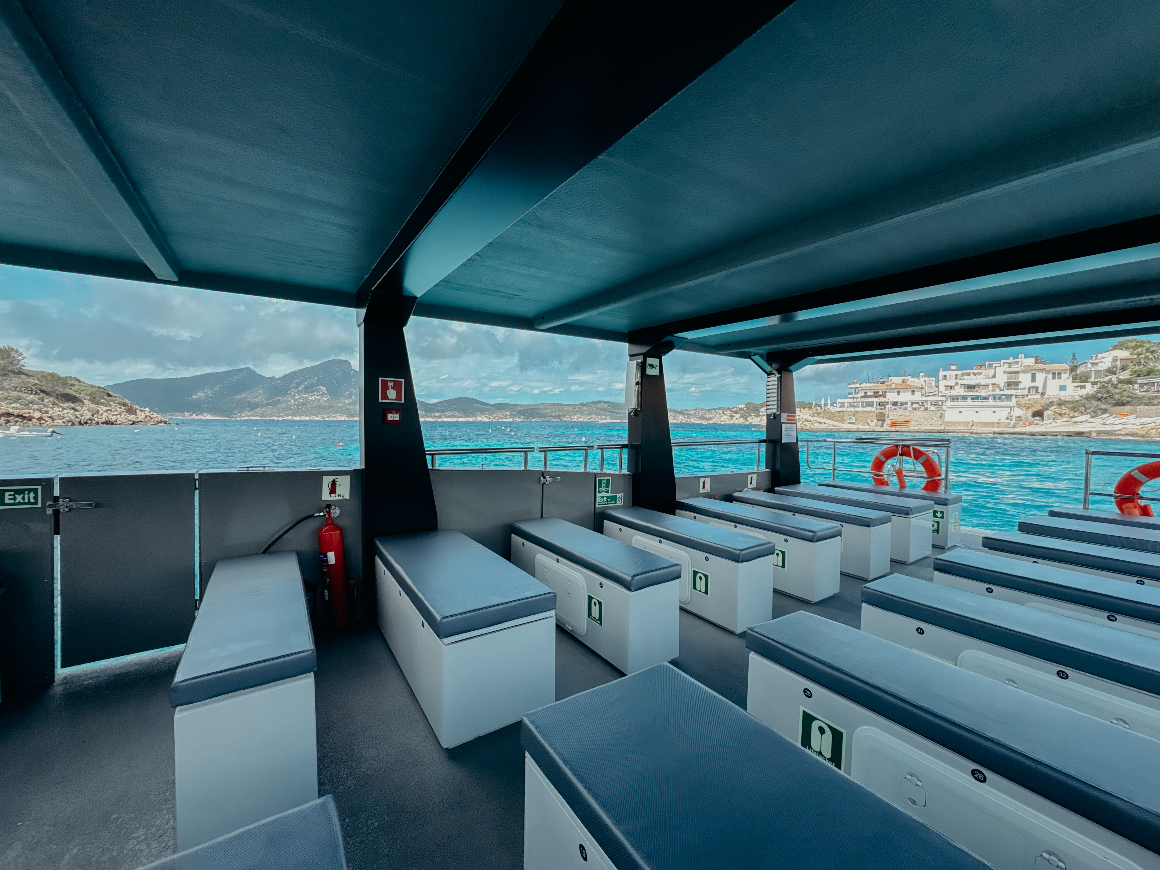 Durante la ruta, el barco realiza una breve parada en Sant Elm para recoger pizzas artesanales recién hechas y bebidas, que podrás disfrutar a bordo mientras continúa la travesía. Posteriormente, se fondea en una preciosa cala para una parada de 40 minutos para nadar y hacer snorkel.